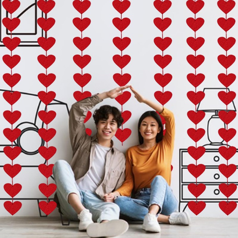 - Applications: This heart shaped garland is an exquisite decoration for Valentine's Day, confessions, proposals, weddings, wedding anniversaries, etc. You can hang it anywhere you like. Also recommended for decorating Valentine's Day, events, rooms, school festivals, stages, parties, birthdays, and stores