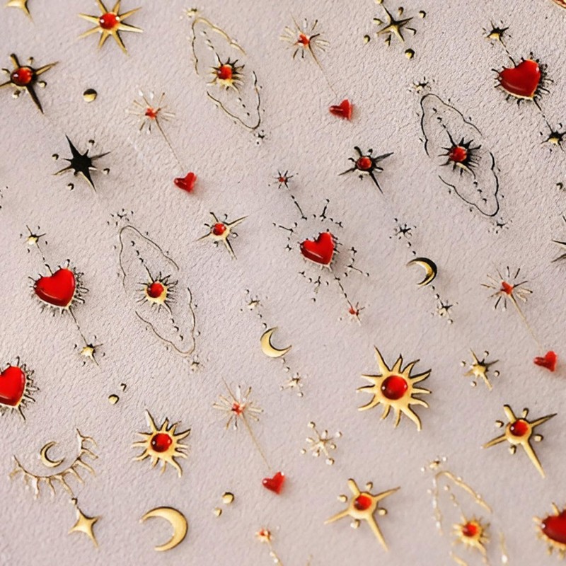 Valentine’s Day 5D Gold Embossed Nail Stickers for Nail Art Star Nail Art Sticker Self-Adhesive Red Heart & Moon Nail Designs Decals for Women Manicure Decorations