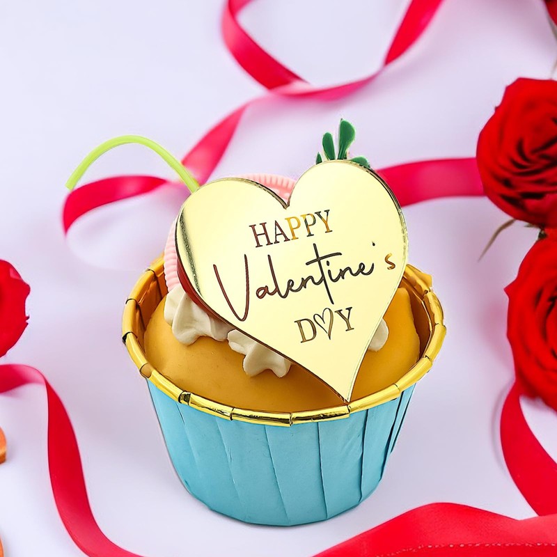 Festive Decorations: 12 Pieces Rose and 12 Pieces Heart acrylic heart-shaped cupcake toppers with 'Happy Valentine's Day' engraving;