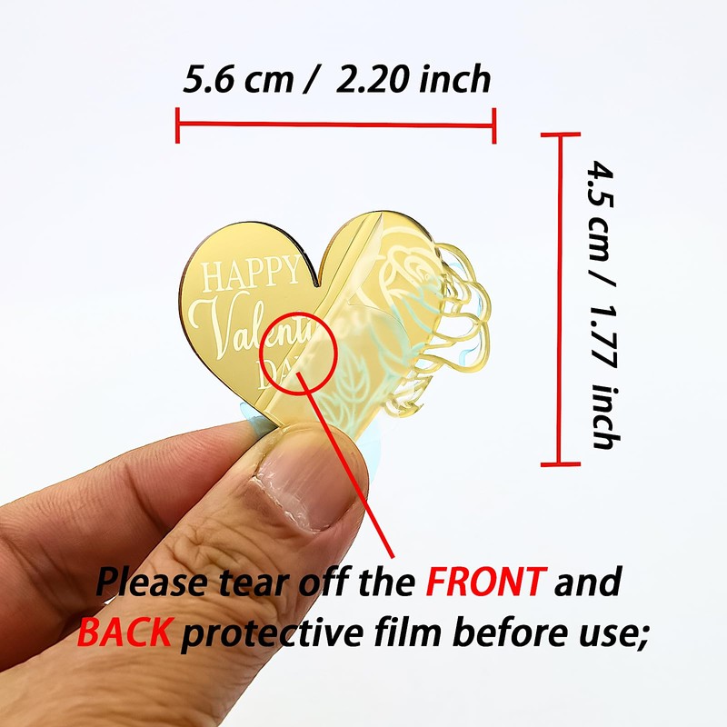 AiQi Bakes 24pcs Rose Carving Gold Mirror Acrylic Heart Shape Happy Valentine's Day Cupcake Decorations, Valentine's Day Cake Party Supplies Gifts