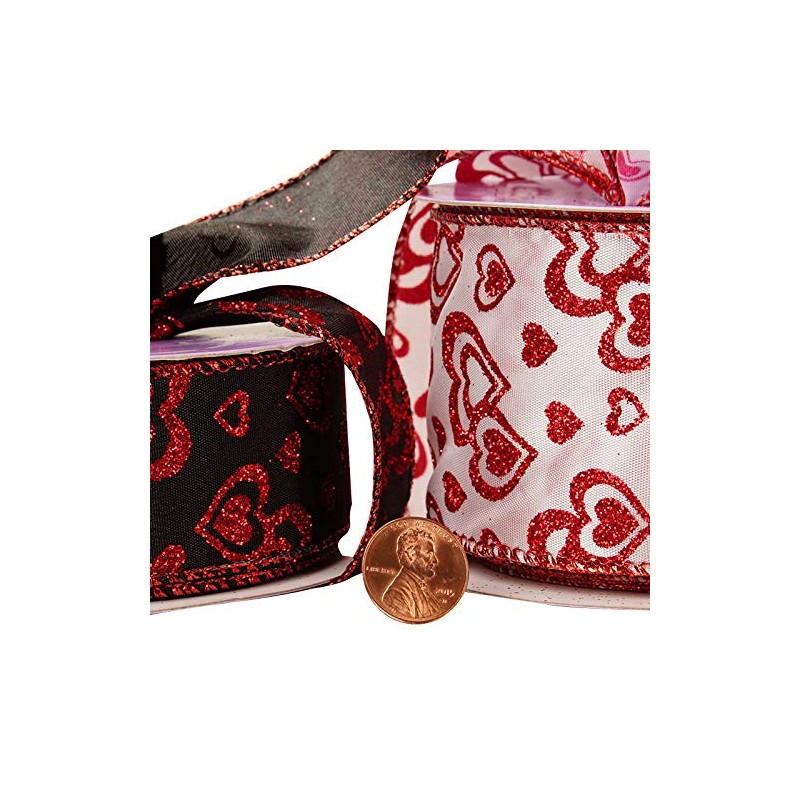 - Ribbon for Gift Wrapping - White Ribbon decorated with Bright Red Glitter Hearts and Red Glitter Wired Edges - Perfect for Valentine's Day, Weddings, Receptions, Baby Shower, Quinceanera, Christmas and all your party decorating needs