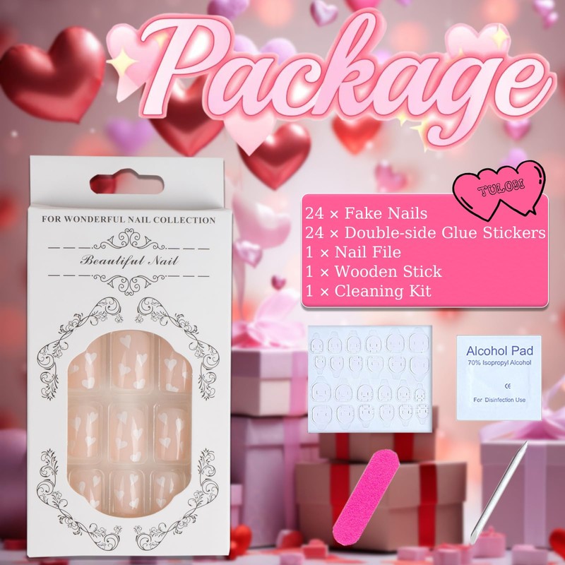 • 💕【Different Patterns 】Our cute press on nails has Valentines elements,bringing a strong atmosphere of Valentines for you, express your love this Valentine's Day with our TULOBI Press on Nails.