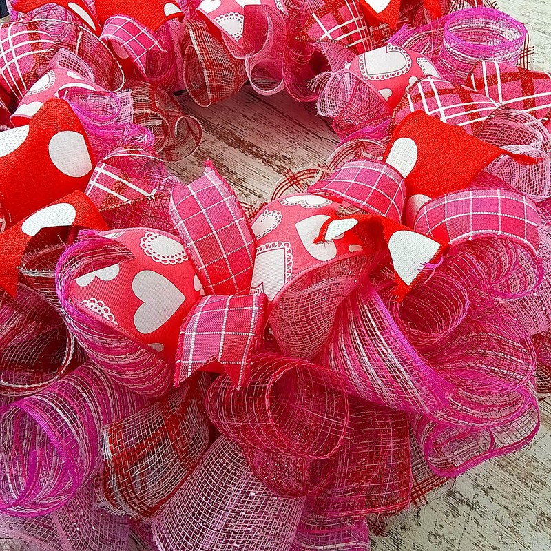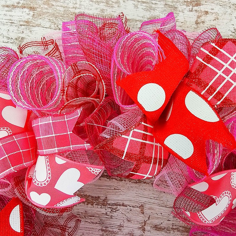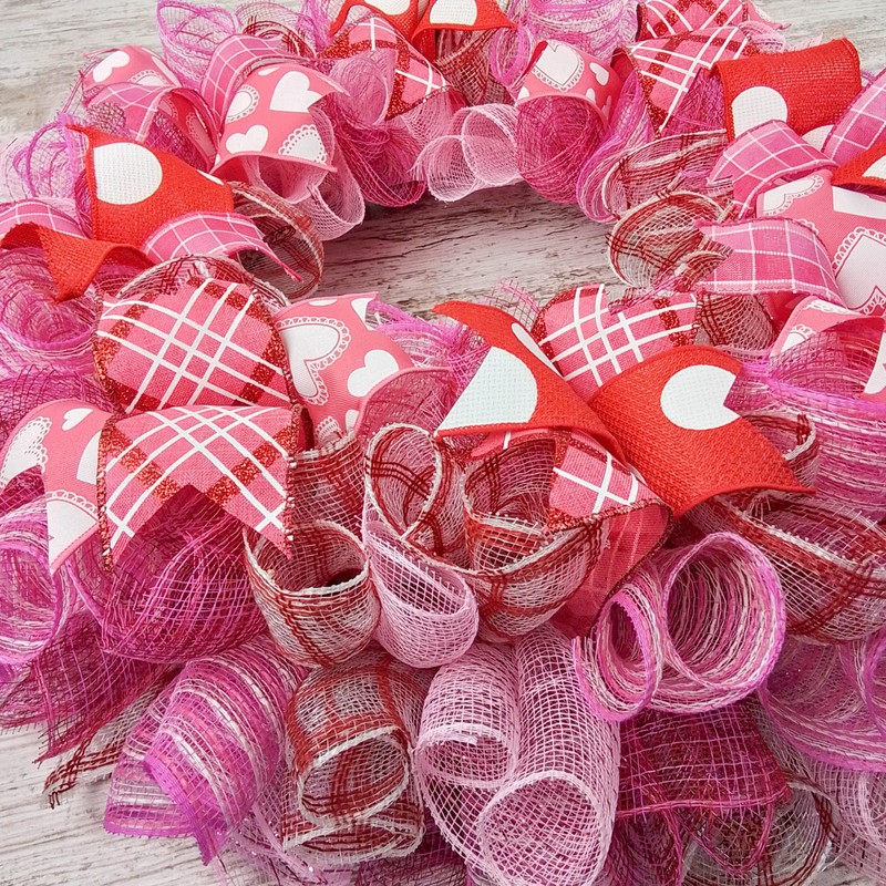 Valentine's Day Wreath - Valentines Mesh Door Wreath - Valentine Wreath - Red Pink White : V5