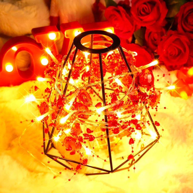 - ROMANTIC VALENTINE'S DAY DECOR: Our Valentines decorations lights feature 30 warm white LEDs, the total length is 10 feet and the spacing of each light is 4 inches. The design combines the elements of red diamond hearts and red beads, adding a unique charm to your valentine's day decor. Decorate with these Valentines lights and illuminate your romantic moments, creating an enchanting atmosphere for Valentine's Day.