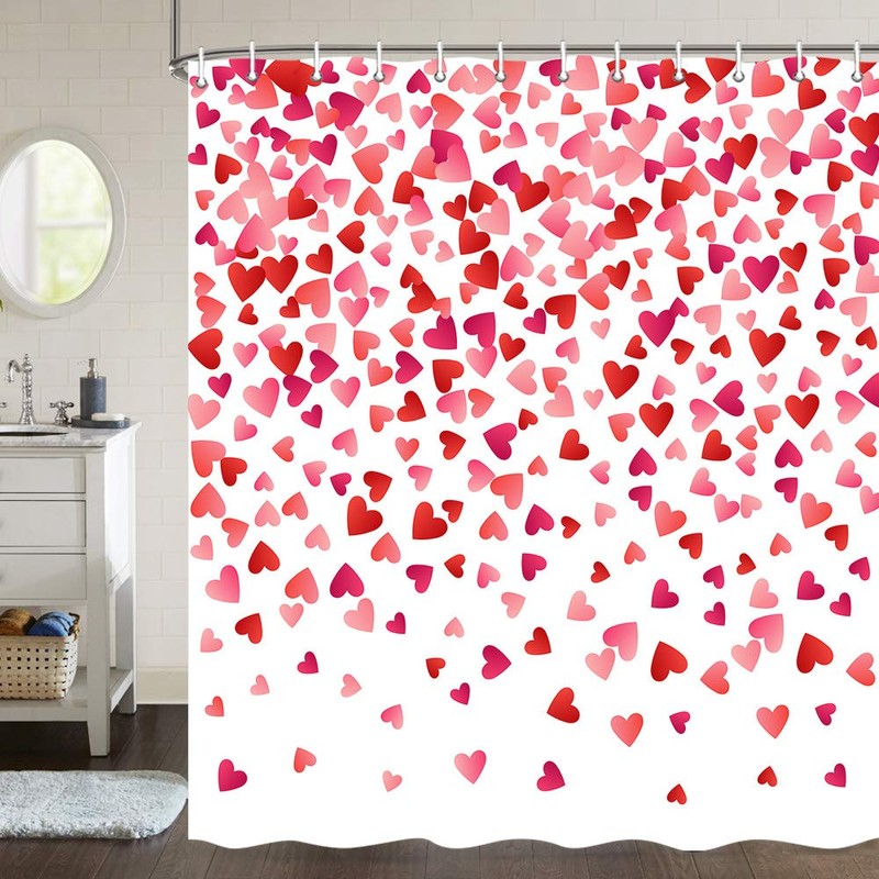 Valentines Day Shower Curtain, Valentines Day Falling Red Hearts Watercolor Falling Red Heart Bathroom Curtain Sets, Fabric Shower Curtain Hooks Include, 70 in