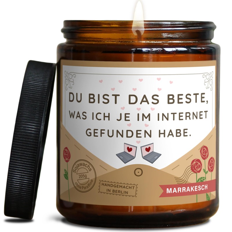 Valentinstag Geschenk Duftkerze | Lustige Liebeserklärung für Sie & Ihn | Handgemacht in DE | In Geschenkbox | Fernbeziehung Online Dating Partner Jahrestag Freund Freundin | Marrakesch