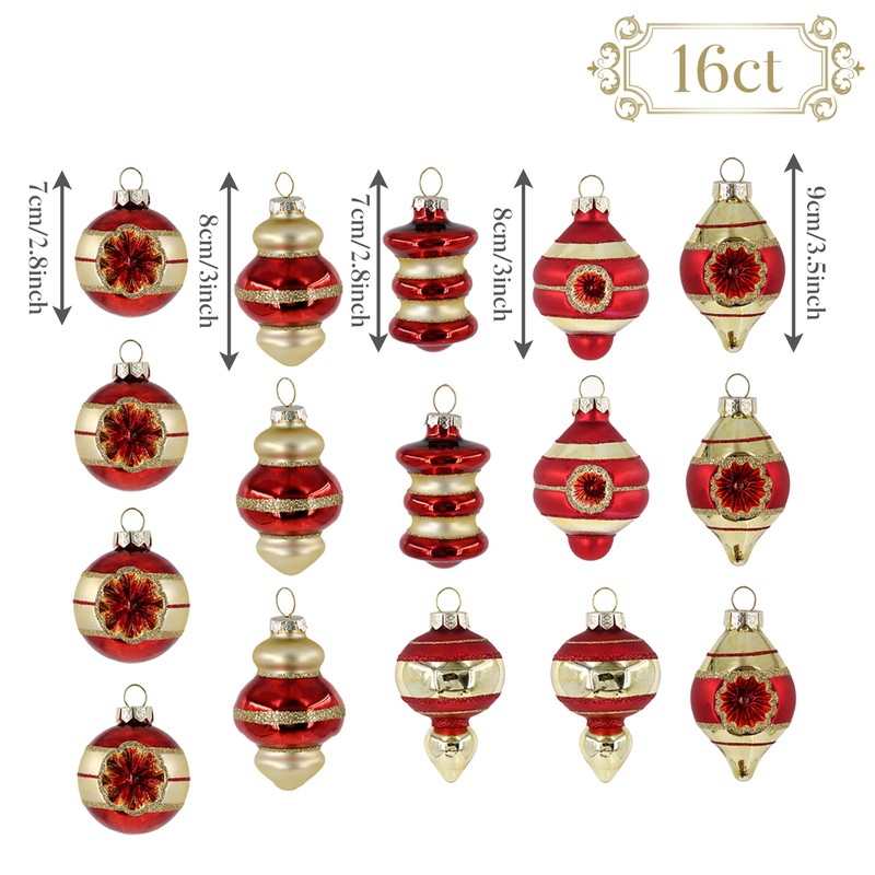 - 【Measurements】One set contains 16 pieces glass baubles in sizes 70mm, 80mm and 90mm. Matching our same theme of Christmas baubles, stocking, tree skirt, garland and wreath