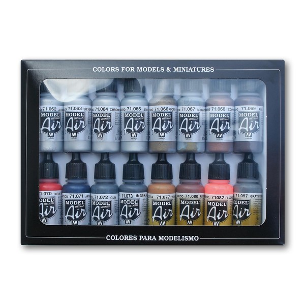 Vallejo Metallic Set Model Air Paint, 17ml, Multicolor, (Pack of 16)