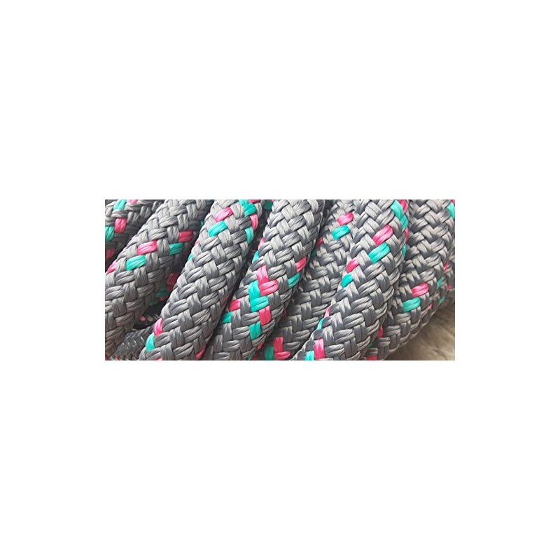 Valley Rope 9/16 x 100 ft. Double Braid-Yacht Braid Polyester Rope Hank. Steel w/Fuchsia &Teal