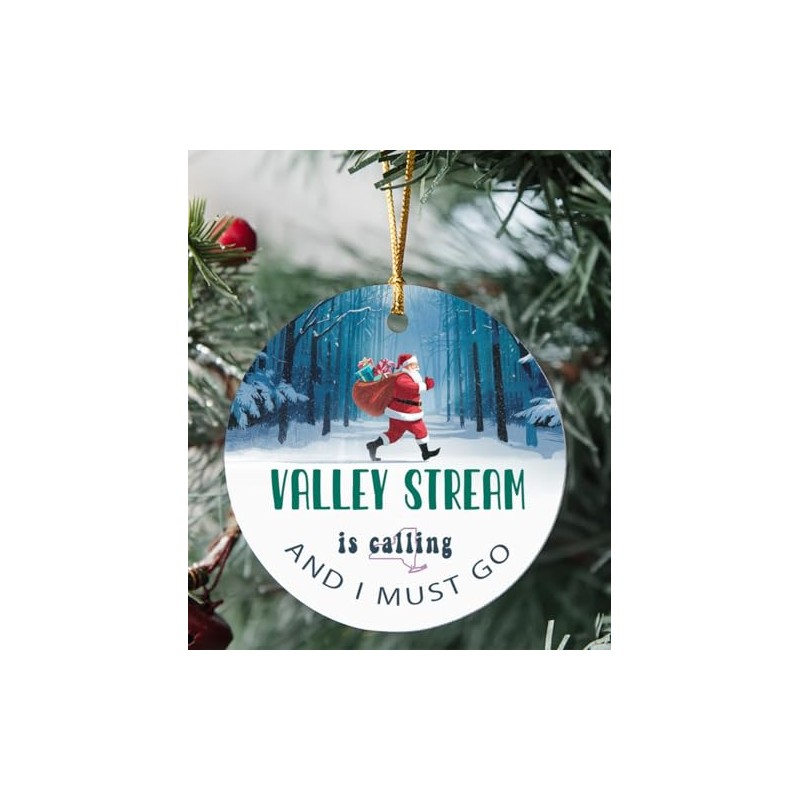 Valley Stream Ornament Gift Valley Stream NY is Calling and I Must Go Funny Santa Claus Christmas Ornaments Tree 2024 Round 3''