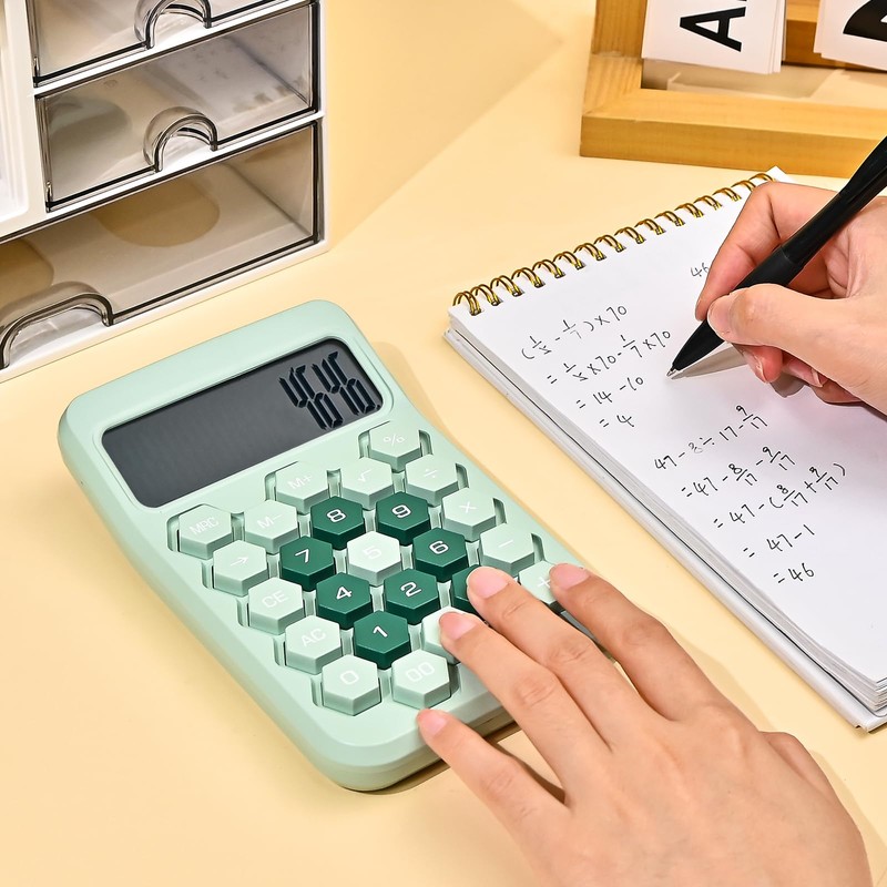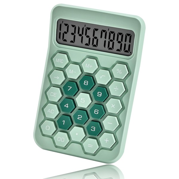 Valtiner Cute Calculators Desktop, 12 Digit Basic Calculator with Hexagonal Big Buttons, Sensitive Aesthetic Desk Accessories Large LCD Display for School Office (Green)