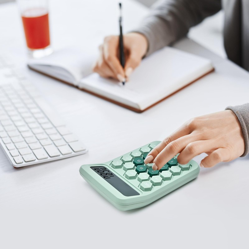 - 15° Elevation Angle and Hexagonal Key Design: The desktop calculator features, flexible keys, a 15° display elevation design, and four different colors to meet your color needs. This handheld calculator can also match with your desktop tools
