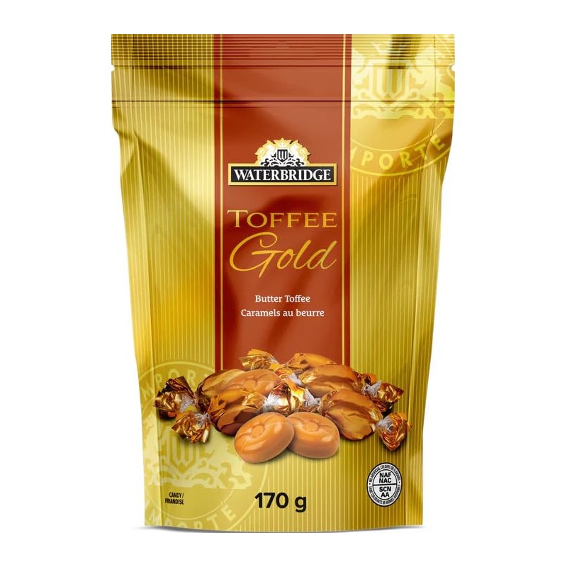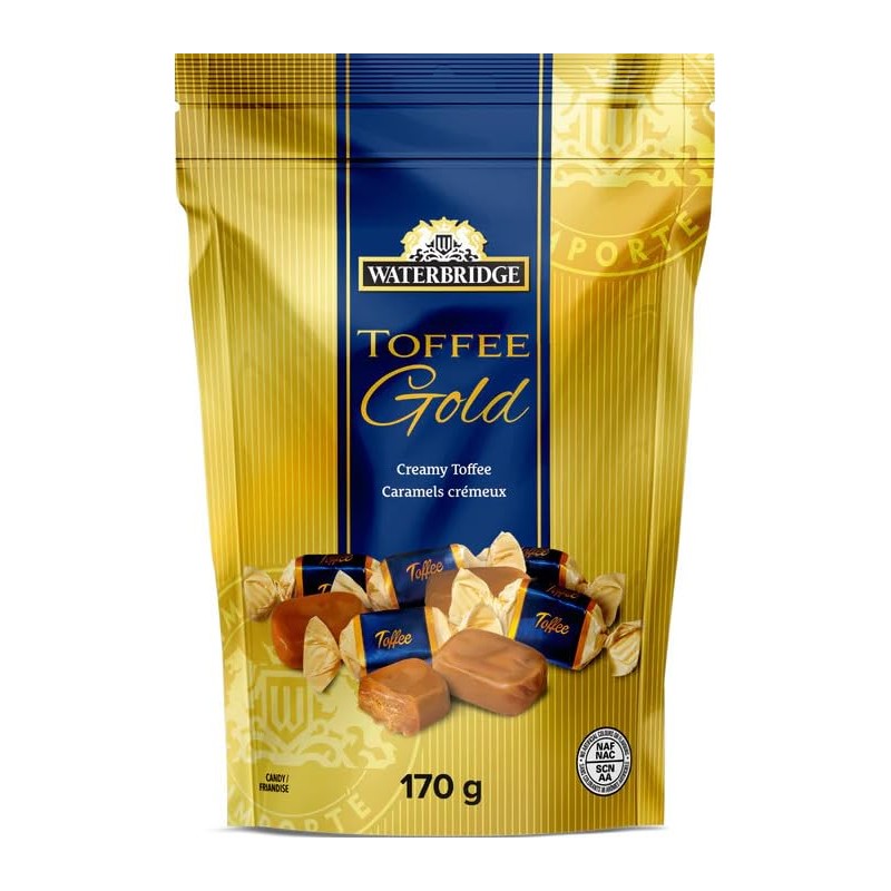 VALUBNDL: WATERBRIDGE CANDY TOFFEE INDIVIDUALLY WRAPPED CANDIES - Bonbons - Custom VALUBNDL Branded (4 PACK, COMBO: (2 HARD/2 CHEWY)
