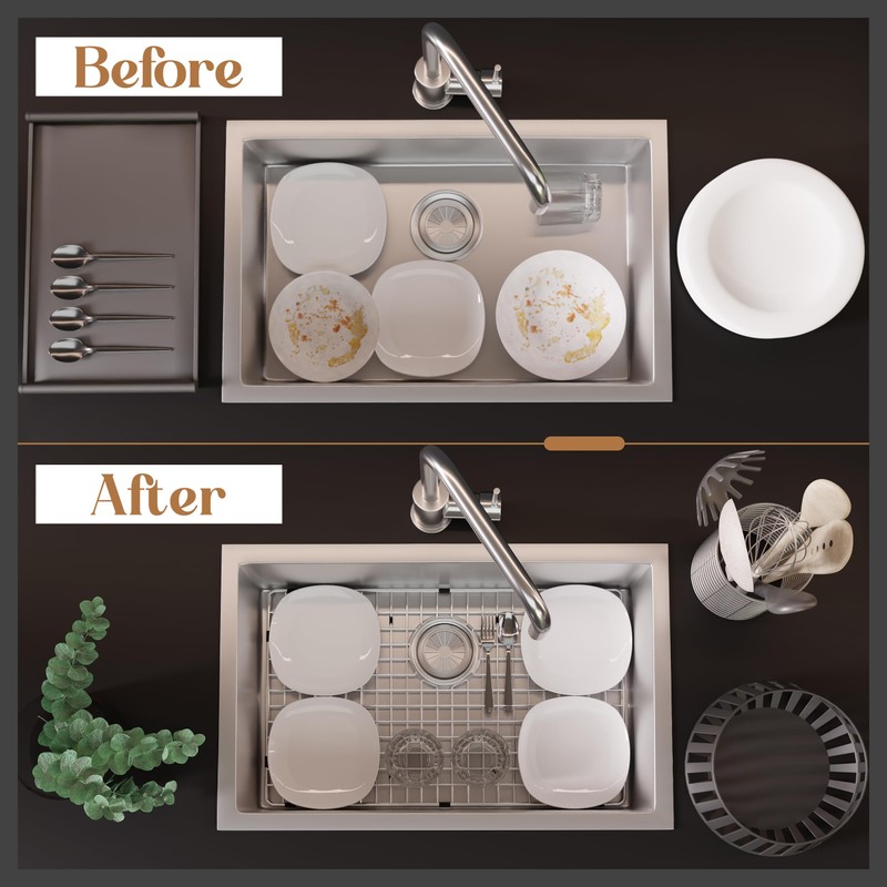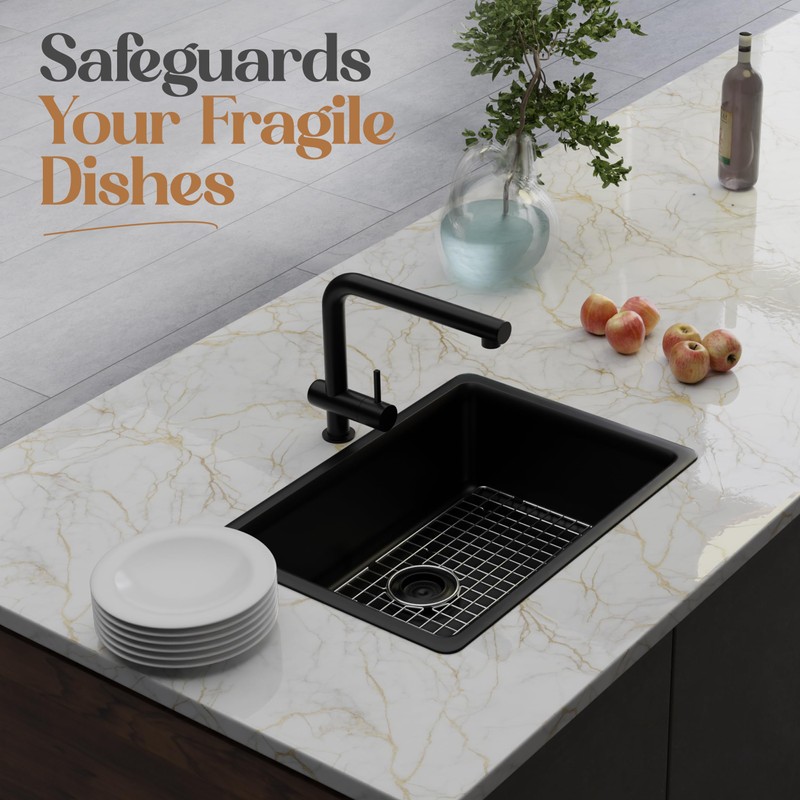 • GLOBAL PATENTED DESIGN - Perfect Fit: Crafted for precision, it is compatible with sink grid 236593 25.61" x 13.63" and fits perfectly in your sink, offering comprehensive coverage. This ensures that your compatible with the single bowl kitchen sink remains protected from scratches and stains with ease.