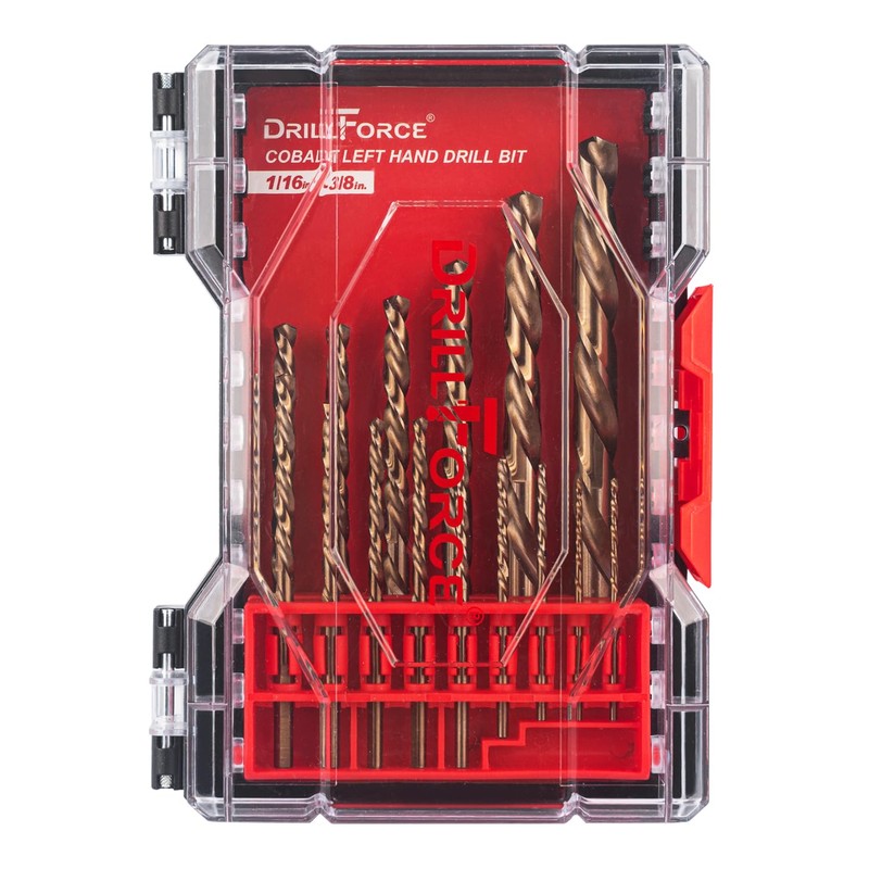 VALYRIANTOOL 15PCS M35 Cobalt Left Hand Drill Bits Set for Removing Broken Stubs, Bolts and Screws, Reverse Twist Drill Bits, 1/16"-3/8"