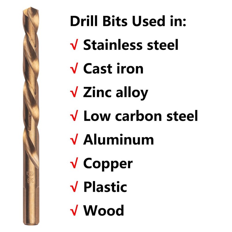 - Multi-Purpose Use: Suitable for drilling stainless steel and various hardened metals such as cast iron, titanium, bronze, aluminium, etc, perfect for removing damaged stubs, bolts and screws, or drilling a pilot hole for a screw