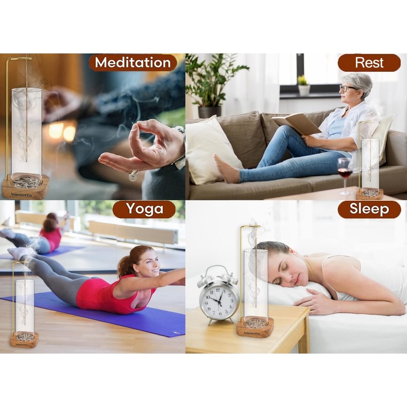 - 【Upgrade Design】Vamotto team innovatively designed an incense burner to prevent dust from scattering. Place the clip on top to make the incense sticks hang upside down, as if suspended in mid-air. At the same time, the glass bottle can form a stable air environment, When the smoke is lingering in the air and emitting bursts of fragrance, the mood is comfortable.