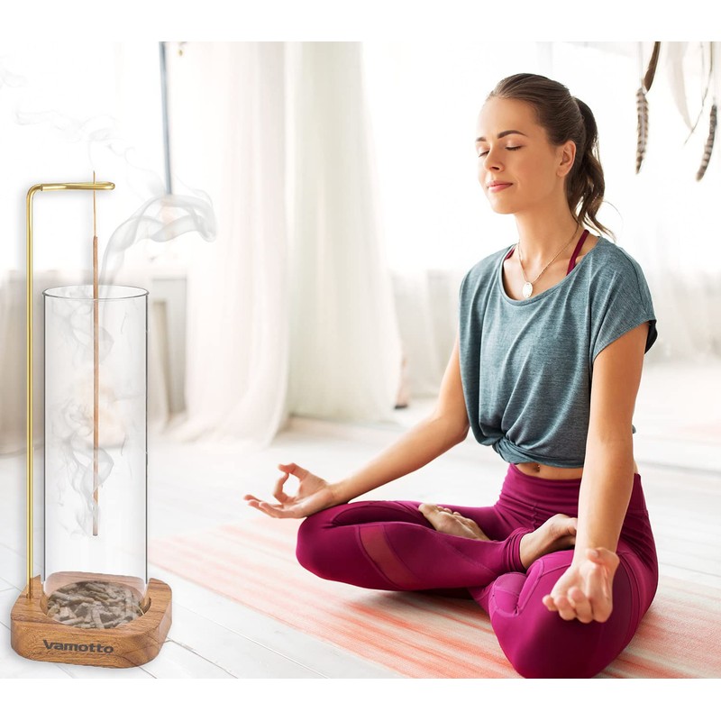 【Premium Material】 Vamotto Incense Sticks Holder - The high quality walnut base is combined with the brass support rod with a diameter of 4mm,and with a transparent glass ash collection container.The simple and fashionable exterior design not only adapts to different styles of rooms.