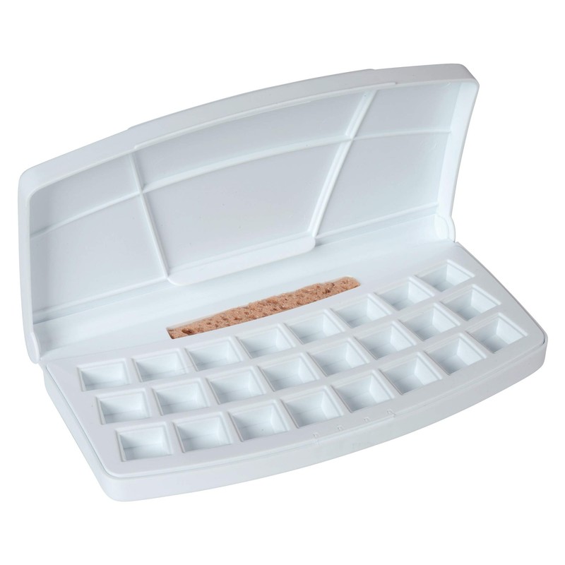 This plastic travel pocketbox comes empty, but with room to hold 24 half pans of van Gogh watercolor paints (sold separately). Select your own pans to create a custom set for your own palette preference! The pocketbox includes also includes a sponge.