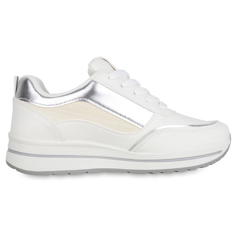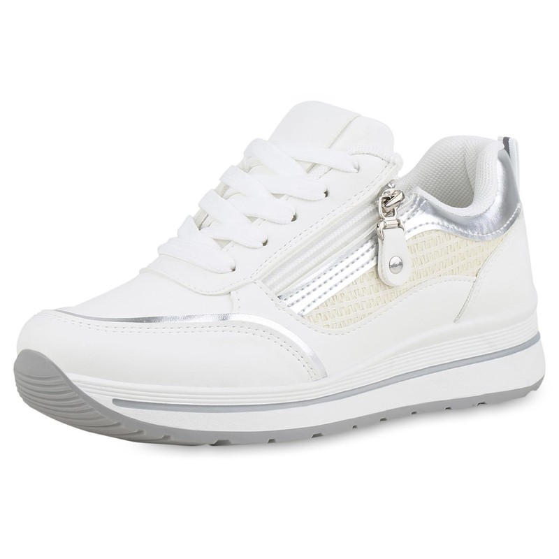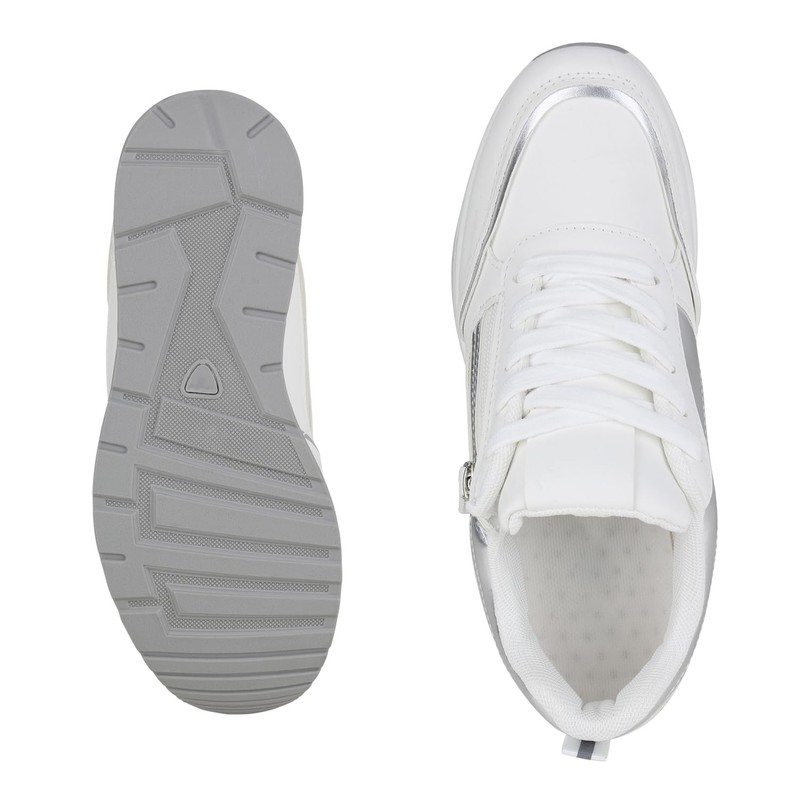 VAN HILL Women's Platform Trainers with Wedge Heel Zip Metallic, Metallic White, 39 EU
