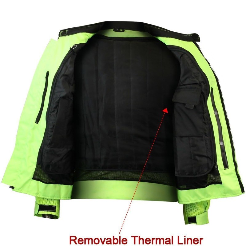 Vance Leather Viper Mens Hi-Viz Reflective Mesh Motorcycle Jacket w/CE Armor & Thermal Removable Liner (Hi-Viz Green, X-Large)