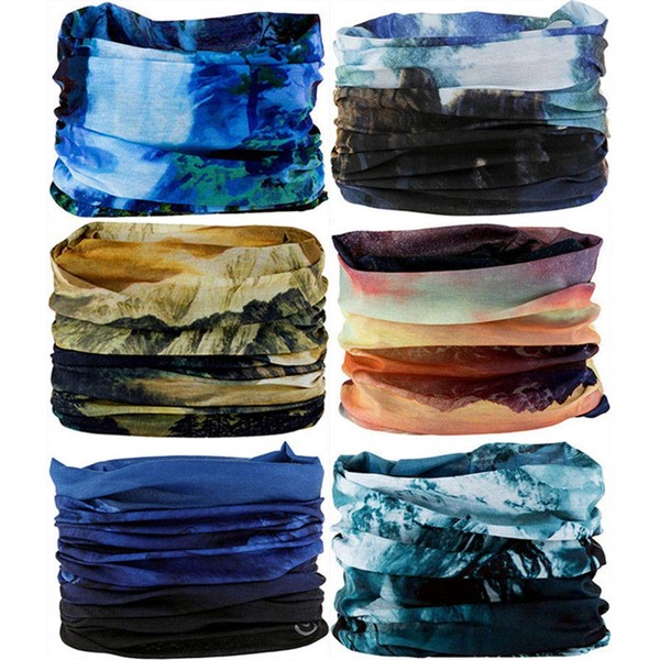 VANCROWN Headwear Wide Headbands Scarf Head Wrap Mask Neck Warmer (6PC.Blue Series.2)