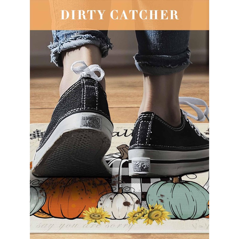 - Fall HOME DECOR: Autumn Holidays Thanksgiving Pumpkin Home Decorative Welcome Mats Rugs For Entrance Way to keep your carpets and flooring cleaner longer;Ideal Holidays Gifts for your Family(Wife) Women/Men Friends as Housewarming Gifts