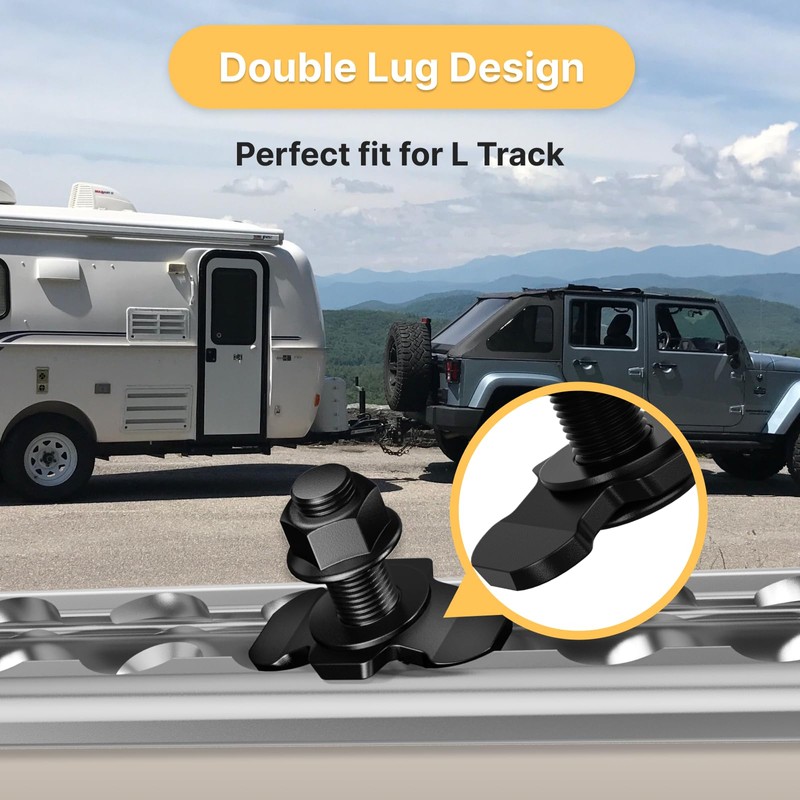 - 【Double Lug Design for Secure Locking】- The double lug design forms a strong and reliable connection when used with L-Track rails, minimizing slippage or shifting during transport. A must-have for improved safety when hauling heavy loads