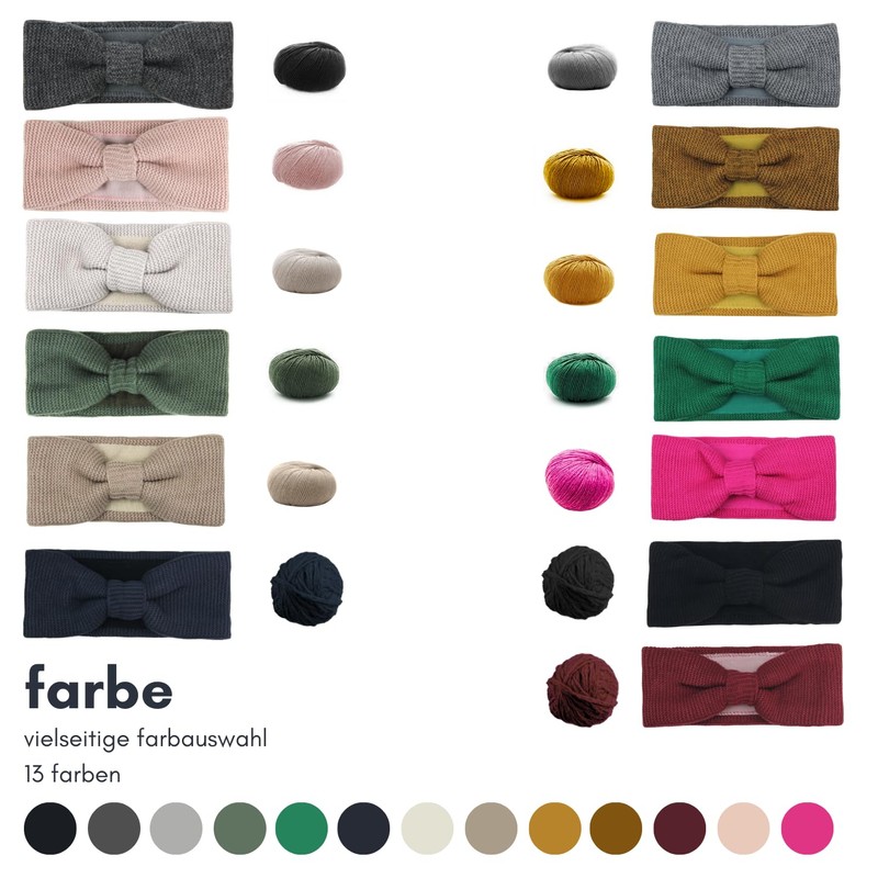 Knitted headband with pretty bow. High-quality workmanship, lined with warm fleece, perfect for the cold season.