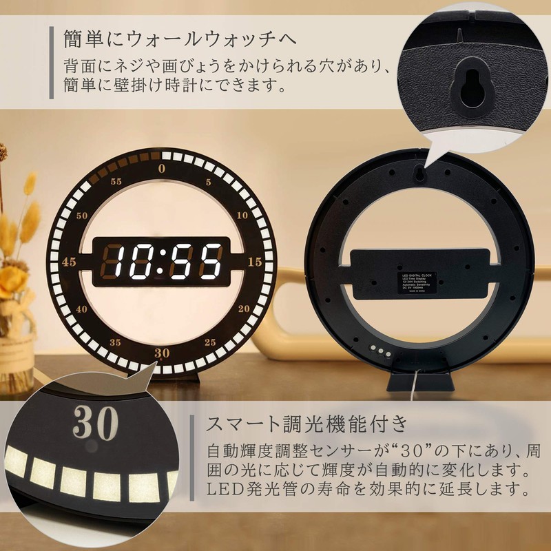 VANGOOD LED Digital Clock, Wall Clock, Automatic Brightness Adjustment, 12H/24H Time Display Mode, Round Shape, Stylish