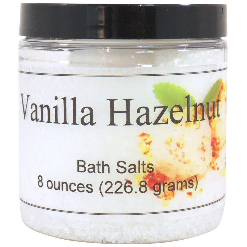 Close your eyes and relax in a warm bath with our bath salts. Our baths salts are made with European Spa Salts. European Spa Salts are solar evaporated and harvested from the pristine waters of the Mediterranean Sea. They are produced using the ancient method of solar evaporation in a region that is free of pollution and has high evaporation rates. European Spa Salts are one of the purest salts in the world. This is a proprietary blend of various sizes of salt crystals. Our bath salts come with a scoop for easy measuring. Our Vanilla Hazelnut is sweet hazelnut with the richness of buttery vanilla cream. This fragrance is phthalate free.