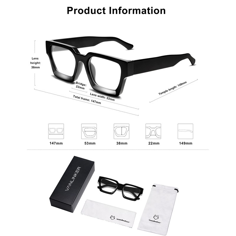 VANLINKER Thick Square Sunglasses for Men Women Retro Chunky Rectangle Shades UV400 Protection VL9731 Black Frame/Blue Light Blocking Lense