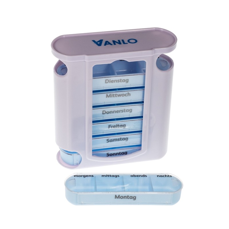 VANLO Tower Pill Box 7 Days with 4 Compartments per Day, Pill Box, Weekly Dispenser, Medicine Box in German