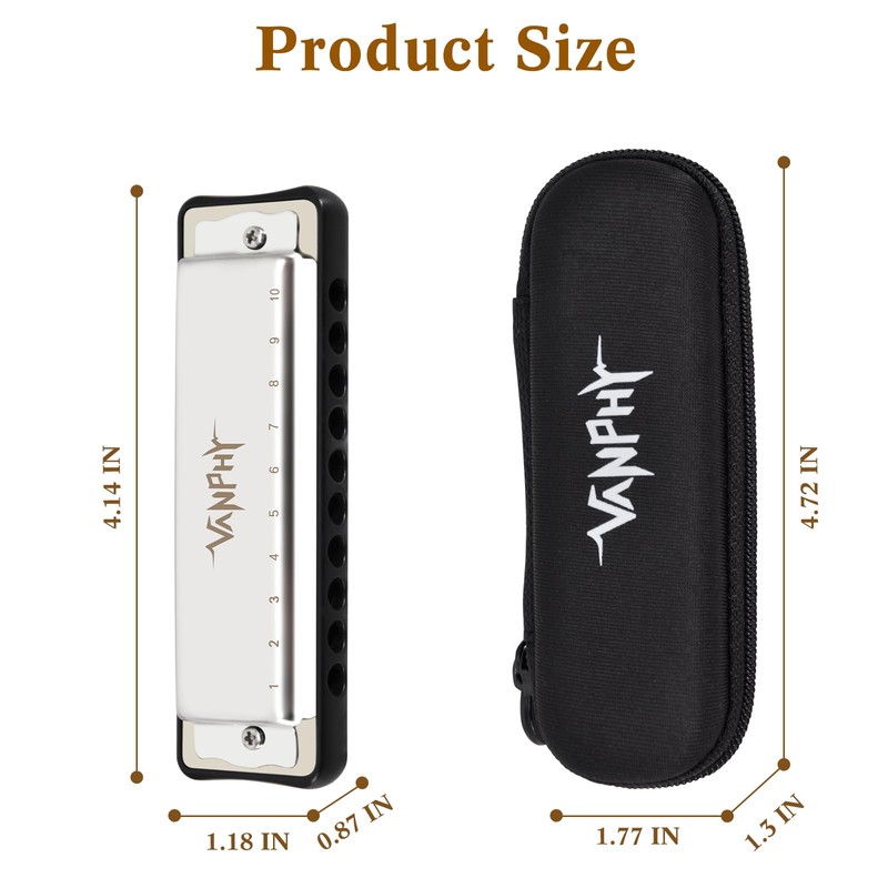 • Circular Sound Hole Design: VANPHY harmonica uses a circular sound hole design to make the lips and the sound hole more fit and use air efficiently. To a certain extent, it improves the comfort of playing and makes the tone more full
