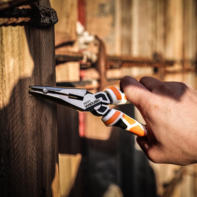 - EXTENSIVE USES--Vanquish needle nose pliers is great for twisting or cutting most hardened wires, nails and small fasteners. It can work at narrow spaces, tapered end for longer reach.