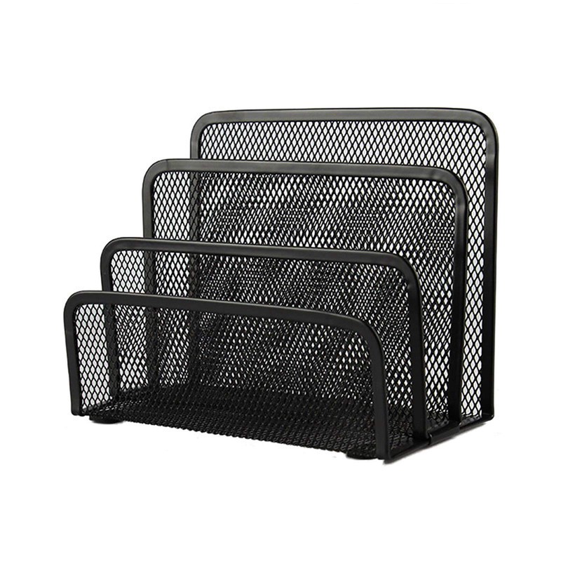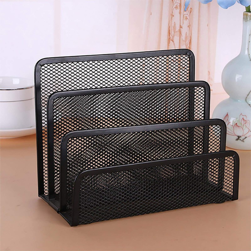 VANRA™ レターラック ファイルボックス マガジンラック 金属メッシュ ミニ手紙オーガナイザー デスク 整理 書類 トレー 小物入れ 卓上収納 デスクオーガナイザー オフィス用品 (黒)