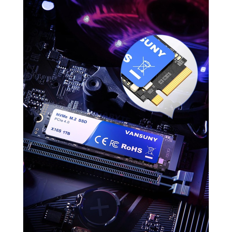 Vansuny M.2 SSD 1TB NVMe M.2 SSD PCIe 4.0 Internal SSD 7,000 MB/s Read, 6,300 MB/s Write M.2 2280 PCIe Gen4 NVMe Internal Solid State Drive with Heatsink for Laptop Desktop Game Console