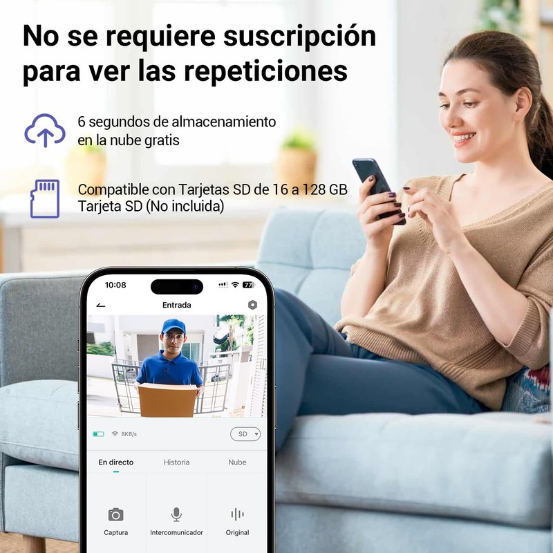 - 【Tarjeta TF/Almacenamiento en la Nube y Batería Recargable】: El timbre inalámbrico con cámara admite tarjetas de memoria de hasta 128 GB (no incluidas) y también incluye un servicio opcional de almacenamiento en la nube (el almacenamiento gratuito en la nube proporciona 6 segundos por grabación y un ciclo de 7 días). Batería recargable integrada de bajo consumo, hasta 90 días en espera con 1 carga. (Nota: El timbre inalámbrico con cámara sólo funciona con WiFi de 2,4Ghz, no es compatible con WiFi de 5GHz).