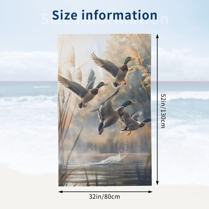 VANZEV Flying Ducks Beach Towel 31inx51in, Wildlife Sand-Free Microfiber Bath Towel Ultra Soft Quick Dry Pool Towel Absorbent Towel Lightweight Towel for Swimming Bathroom Decor