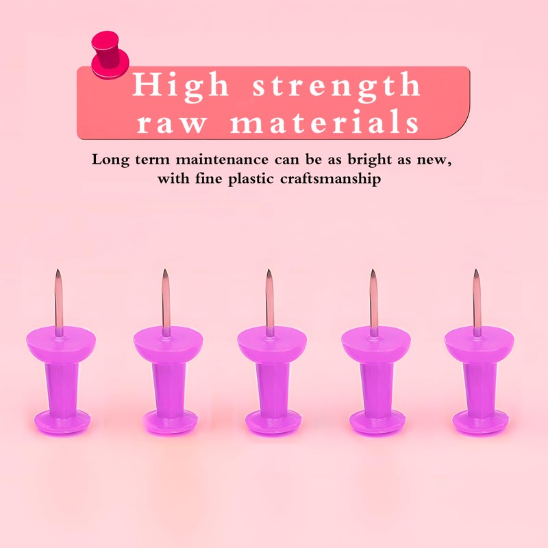 • Package include:120 pcs pins,the color are Violet,Push pins are packed in a reusable storage box,you can hang something or keep something in place,you can get the tacks quickly
