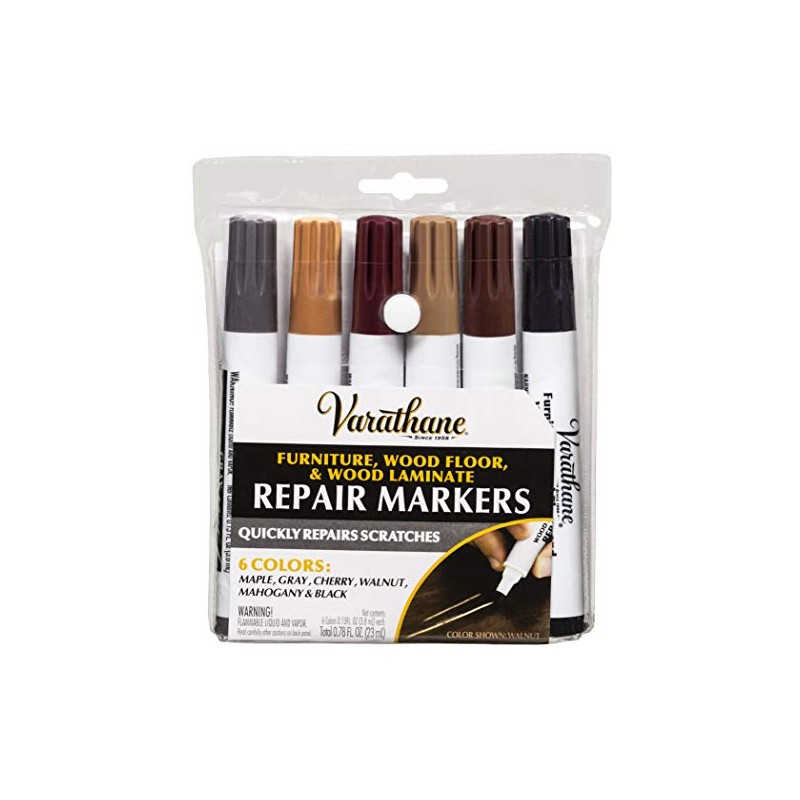 Varathane Furniture, Wood Floor, and Wood Laminate Markers provide a variety of color options in one kit to quickly fix scratches and blemishes on stained wood and laminate surfaces. The wood stain repair marker kit allows for peace of mind and versatility on all interior wood furniture or works as the perfect decorative touch on small projects and crafts. Complements Varathane wood stain colors for a seamless finish on wood furniture, cabinets, molding, floors, doors and more.