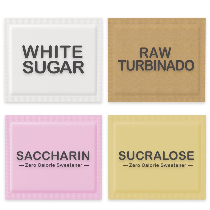 Variety Pack Sweeteners - Assorted mix for Tea, Coffee & Beverages – Includes Saccharin, Sucralose, Raw Brown & White Sugar – Convenient, Individually Wrapped Packets (400 Count Total)