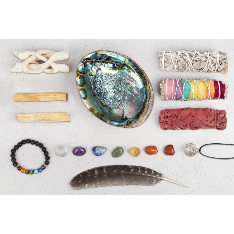 Variety Sage Smudge Kit with Shell, Palo Santo, Stones, Bracelet, Feather & More