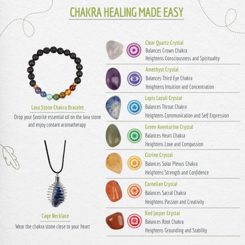 Crystals Set Also Includes 7 Chakra Lava Crystal Bracelets: Infuse your lava bracelet with essential oils for on-the-go aromatherapy. Enjoy your favorite scent all day, promoting wellness and mindfulness.