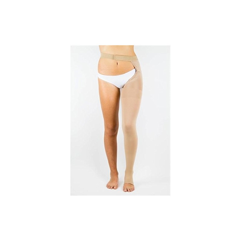 • Elastic orthopedic one-leg compression stocking (A-G) for left leg with open toe. Compression class KL2 23-32 mmHg. Velcro waist