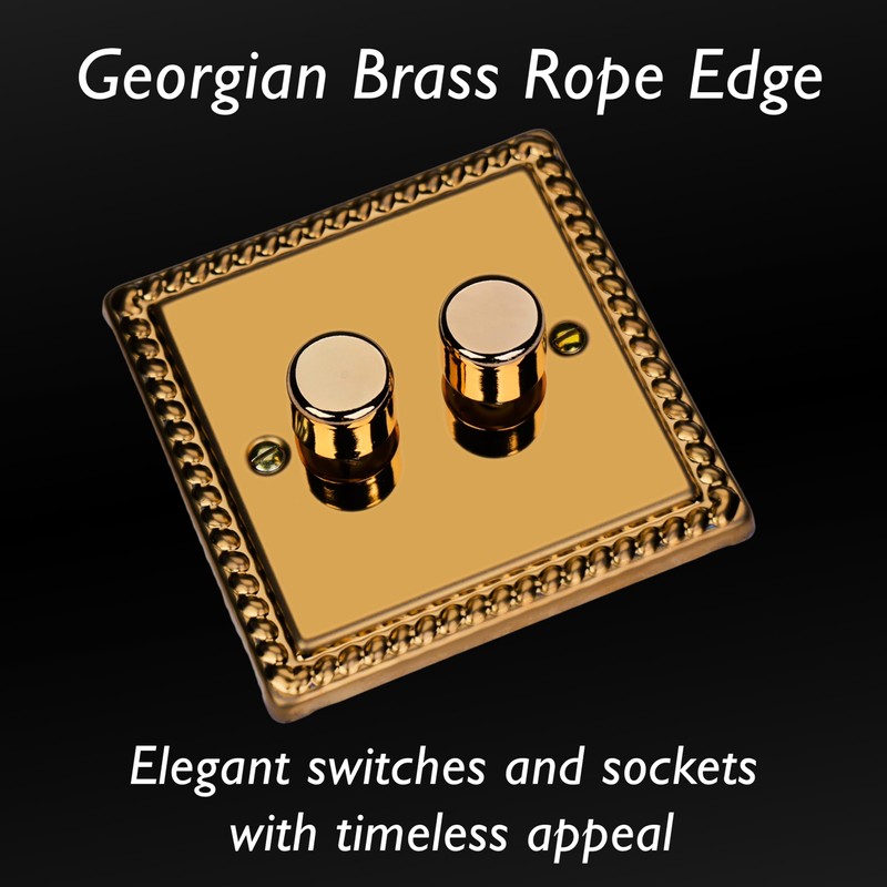 Varilight 2-Gang V-Pro Smart Dimmer Non-WiFi Dimmer 2 x 120W LED Classic Georgian Brass with Polished Brass Knob