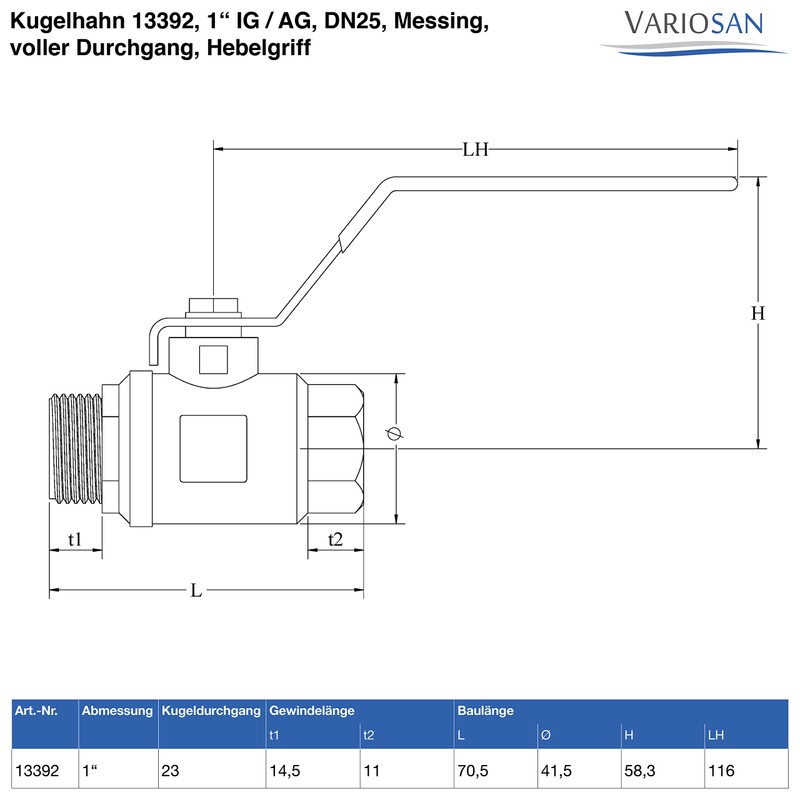 VARIOSAN Ball Valve 13392 1 Inch Female Thread / Male Thread DN25 Brass Full Flow Lever Handle