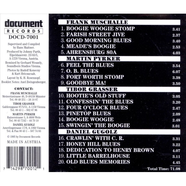 Personnel: Frank Muschalle, Tibor Grasser (piano); Peter Muller (drums).