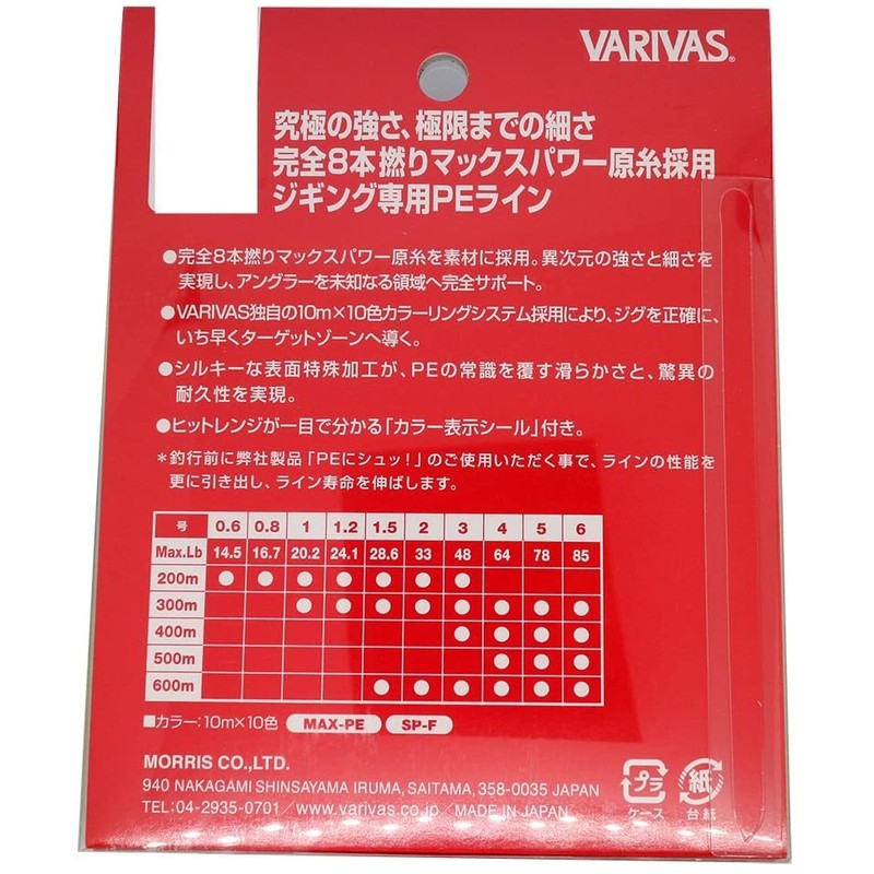 VARIVAS PE Line, Avani Jigging, 10 x 10, Max Power PE X8, 656.2 ft (200 m), No. 1.5, 28.6 lb, 8 Pieces, 10 Colors
