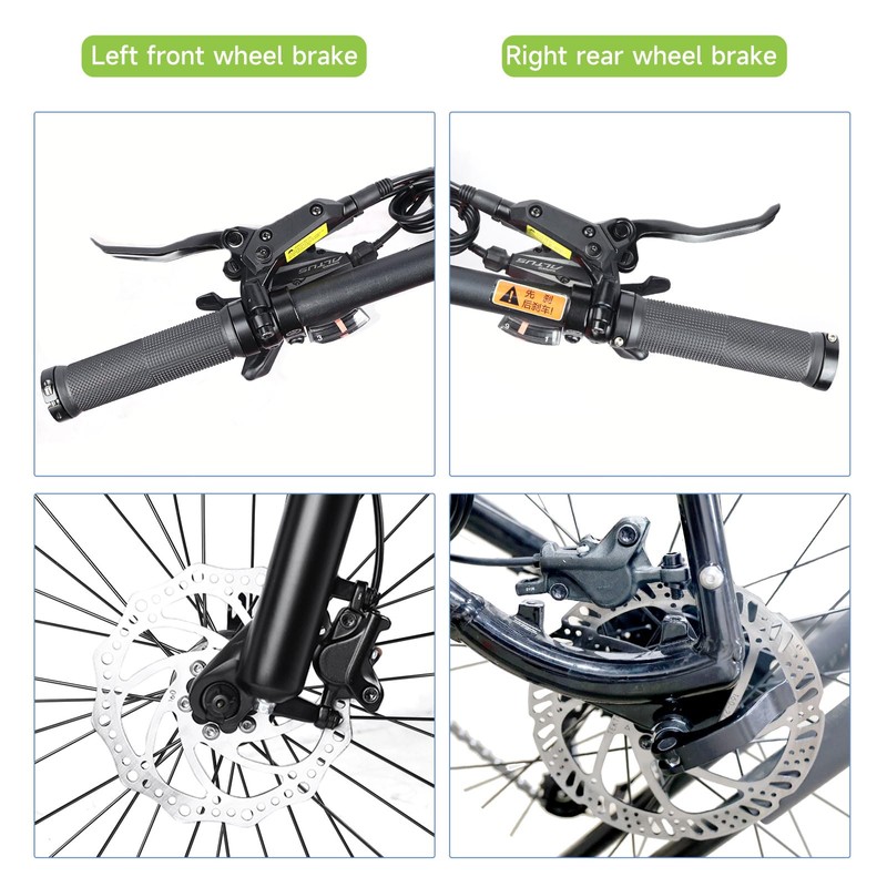- Installation Instructions: Ensure the calipers and pads are properly fitted to the hub and aligned with the disc. Adjust the clearance and fine-tune the brake adjustment screws to prevent clicking and ensure effective braking. Bleed the hydraulic disc brake system to maintain optimal performance. Test the brakes by pulling the handle to confirm proper contact and normal braking